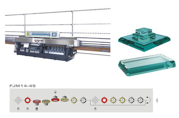 FZM14-45 pode processar vidros (tamanho mínimo: 90x90mm, espessura: 3 ~ 30 milímetros), com a velocidade de 0,4 ~ 4,4 m / min.